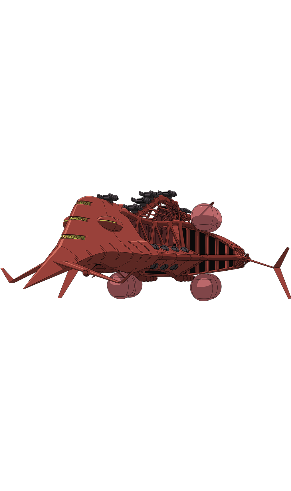 A Gwazine class battleship operated by Principality of Zeon forces. It was deployed around Yomagn'tho as escort ships.