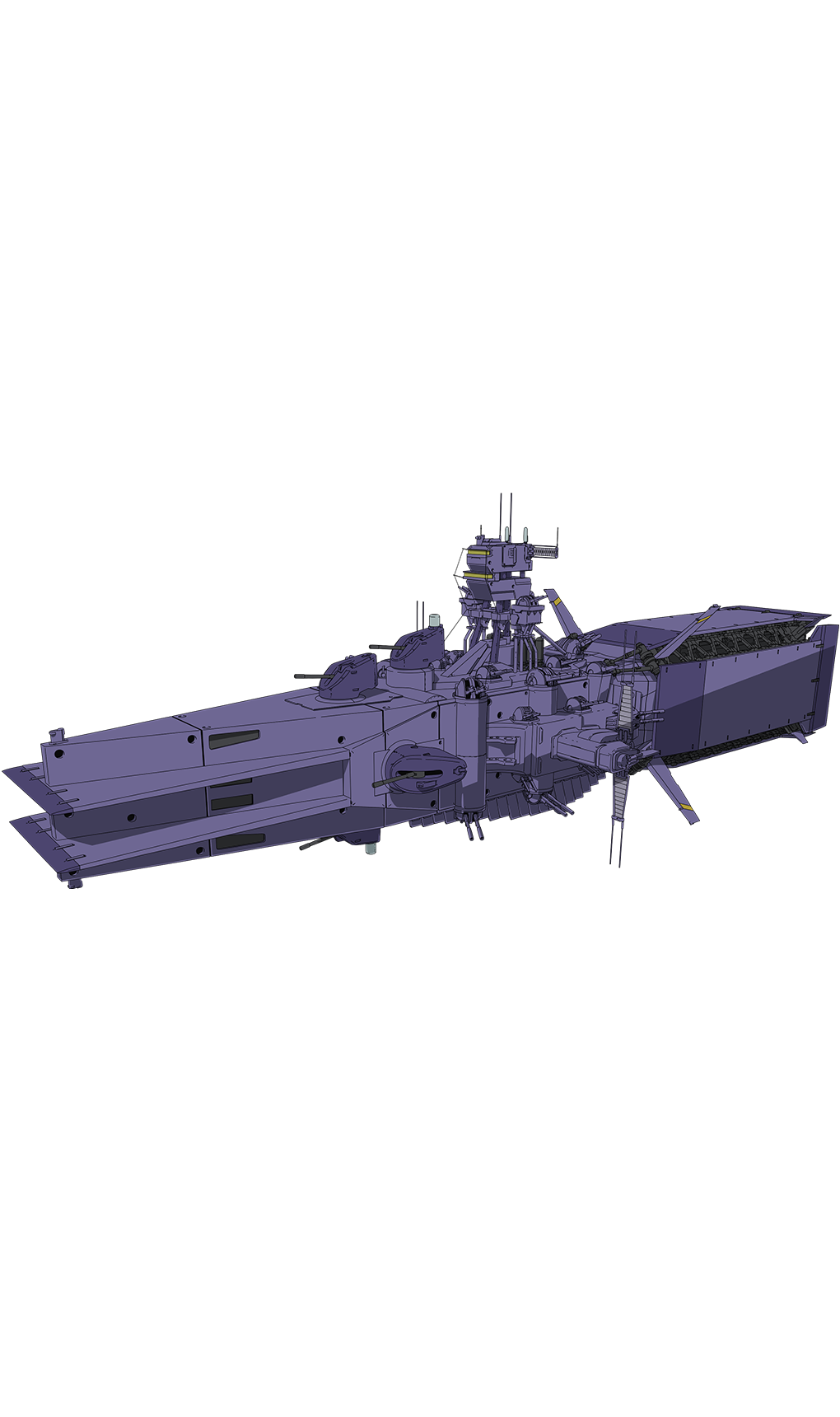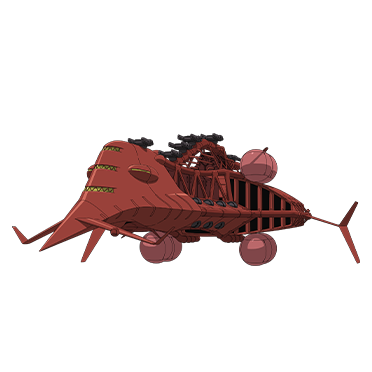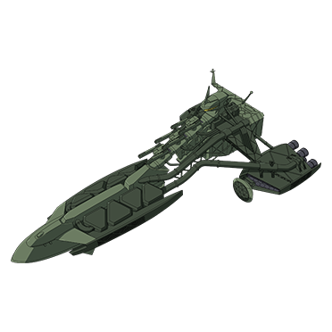 A space battleship operated by Side 6 Military Police. It is a former decommissioned ship of Earth Federation forces that was sold for civilian use. Side 6 has bought those ships and deployed them for self-defense use.