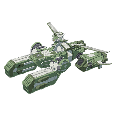 A space cruiser of the Earth Federation forces. Deployed in large numbers as a mainstay vessel.