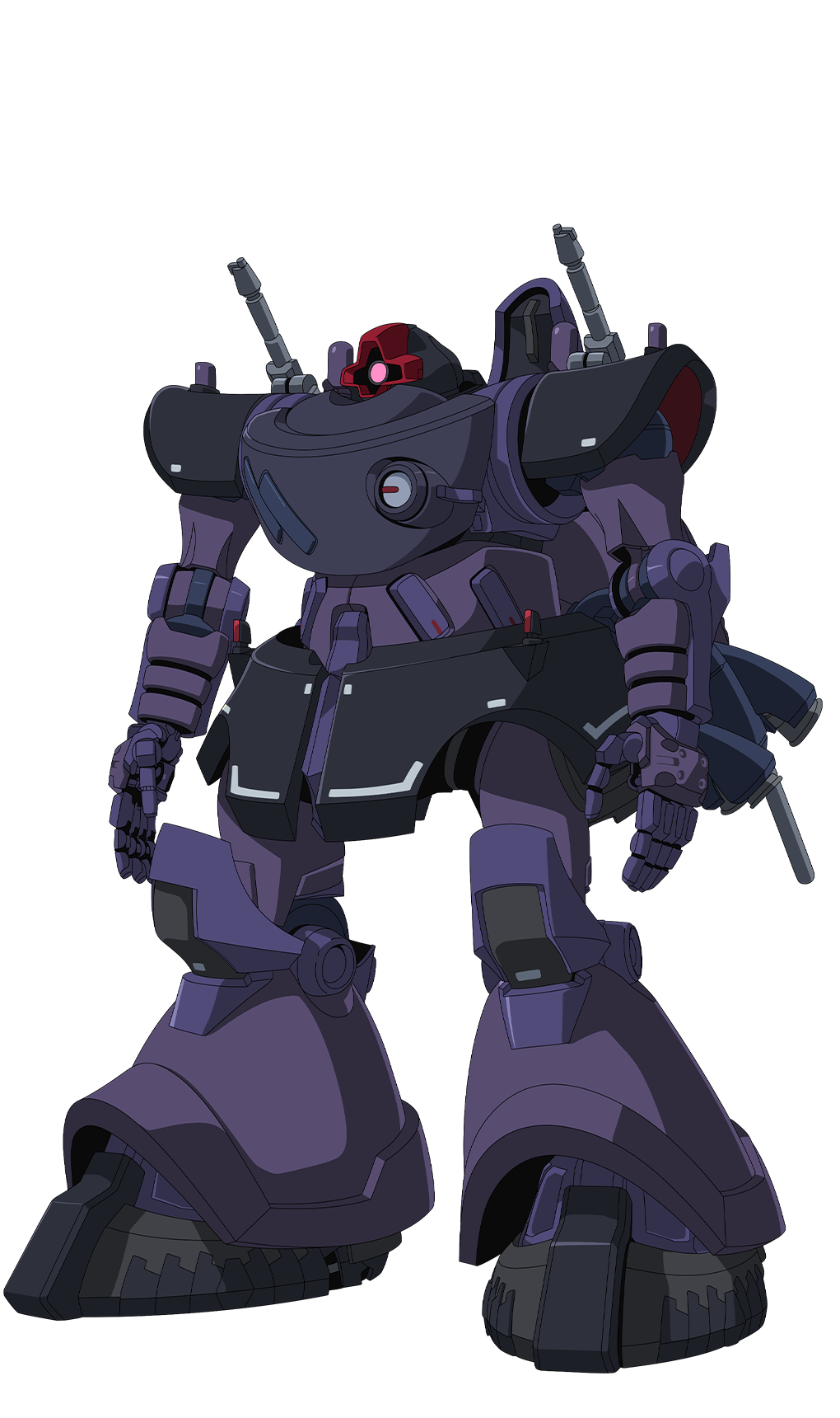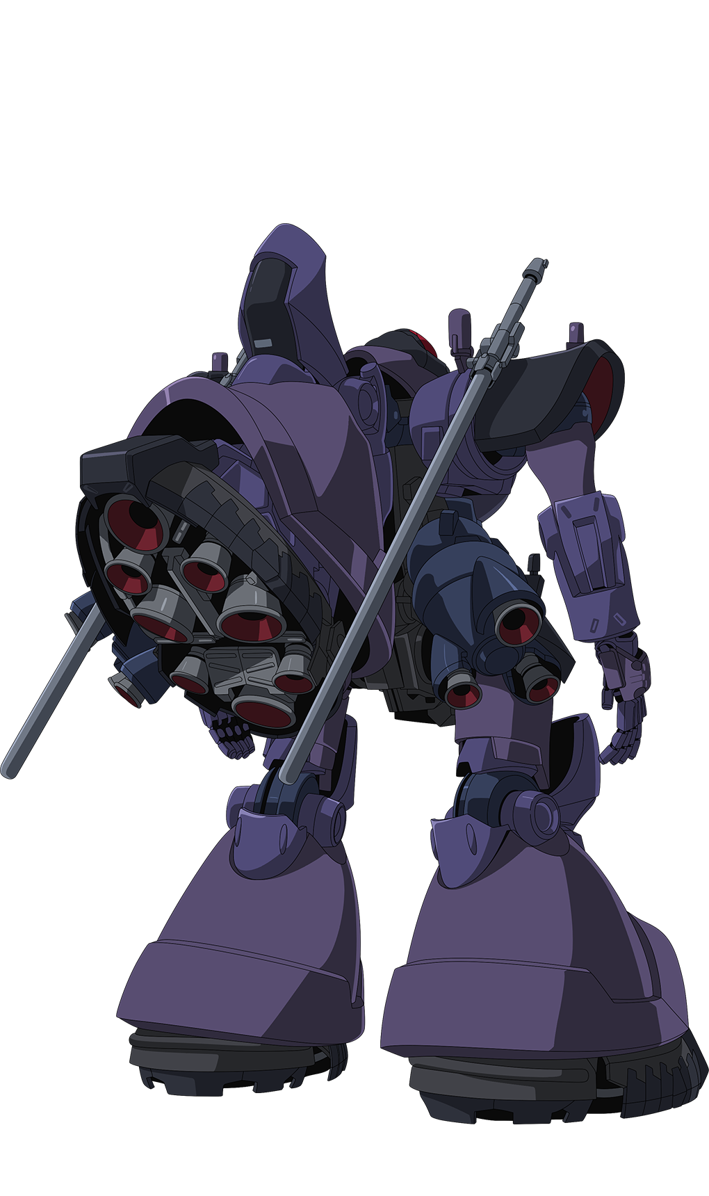 A variant of the Principality of Zeon forces’ Dom, originally developed as a heavy mobile suit for ground combat, modified for use in space. It is characterized by its high-output thrusters. The standard model features a green-based color scheme, while Gaia’s and Ortega’s machines are primarily colored in purple.
