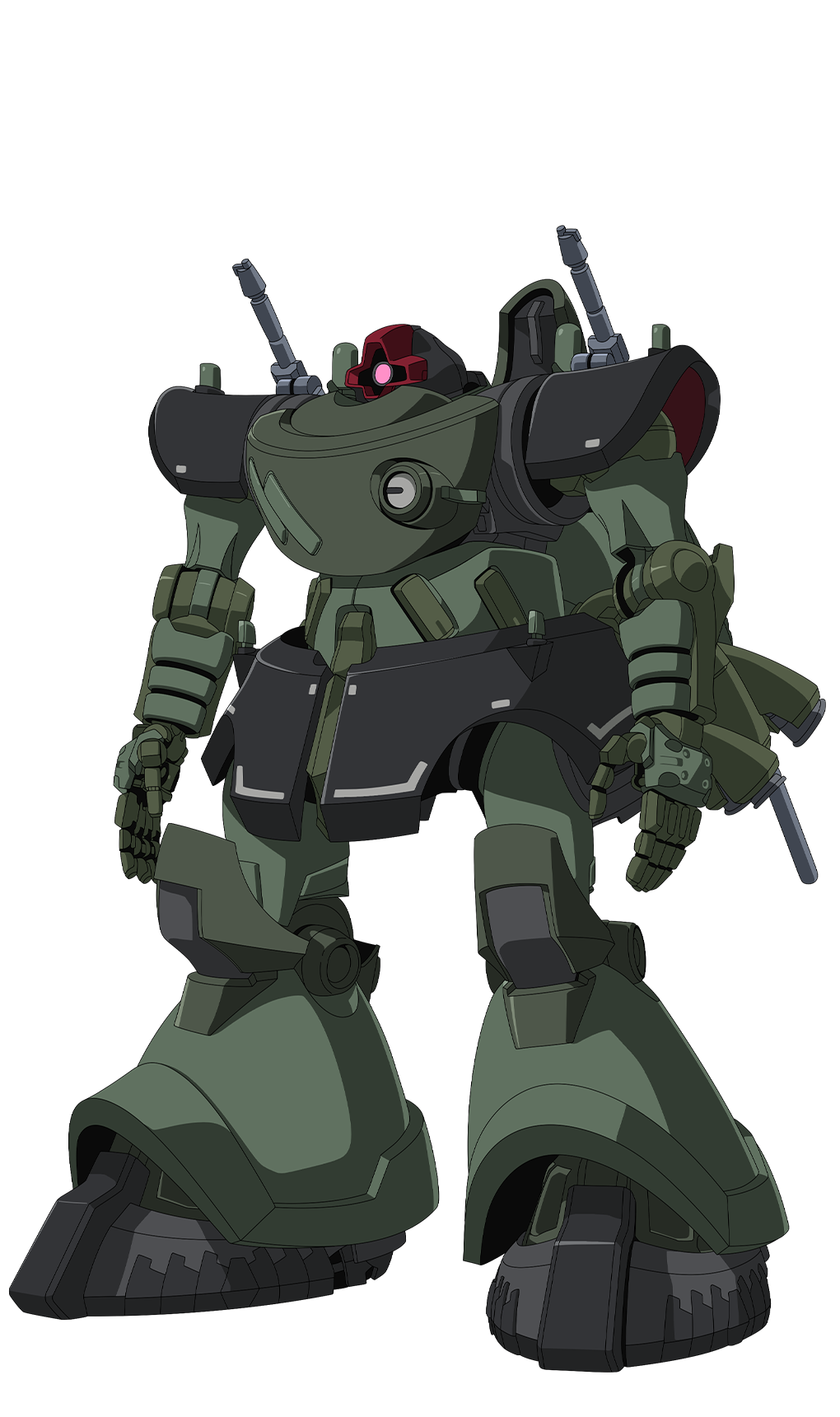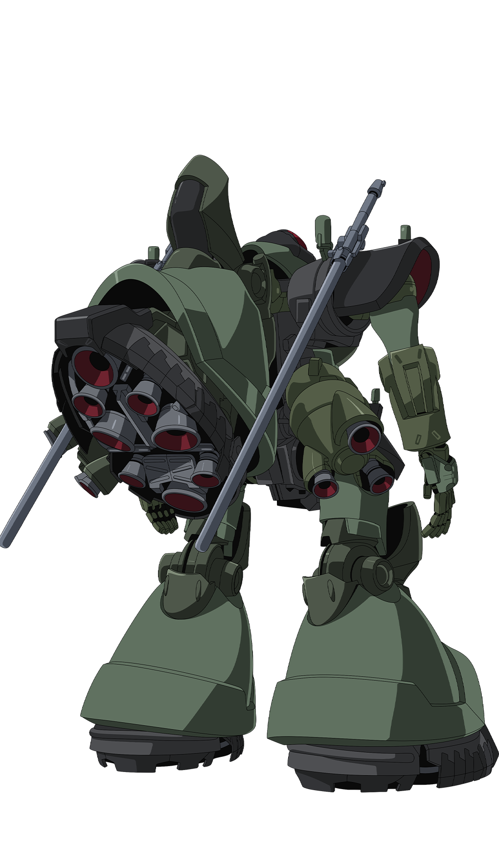 A variant of the Principality of Zeon forces’ Dom, originally developed as a heavy mobile suit for ground combat, modified for use in space. It is characterized by its high-output thrusters. The standard model features a green-based color scheme, while Gaia’s and Ortega’s machines are primarily colored in purple.