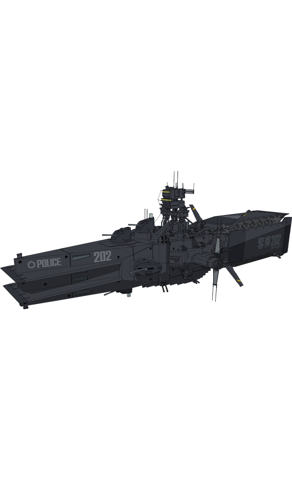 A space battleship operated by Side 6 Military Police. It is a former decommissioned ship of Earth Federation forces that was sold for civilian use. Side 6 has bought those ships and deployed them for self-defense use.